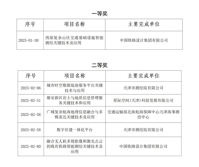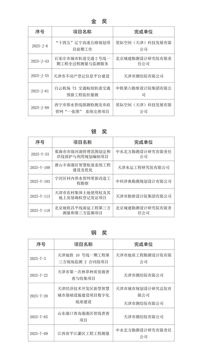 2025 地理信息产业优秀工程奖天津地区会员榜单